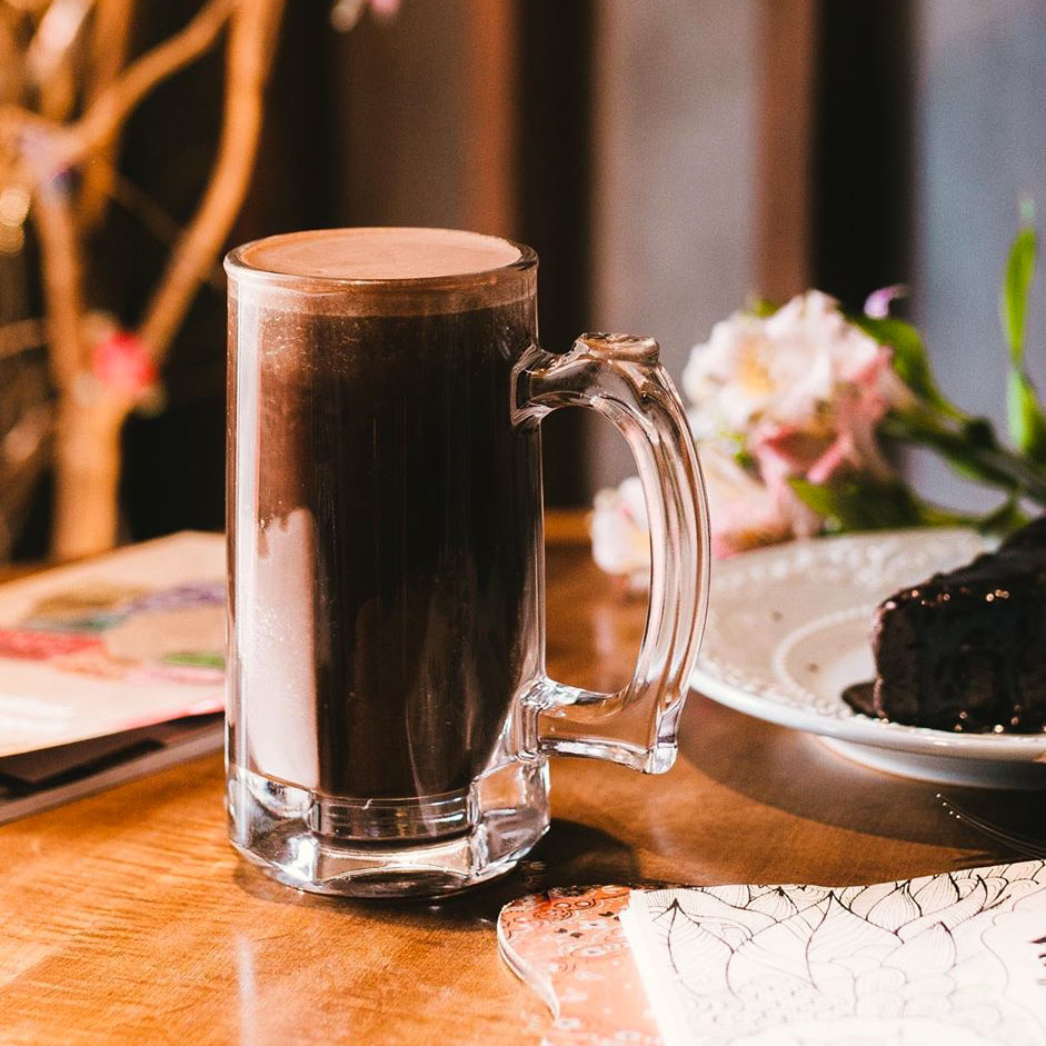 O mais delicioso chocolate quente do sul do mundo, servido em uma caneca de chopp.