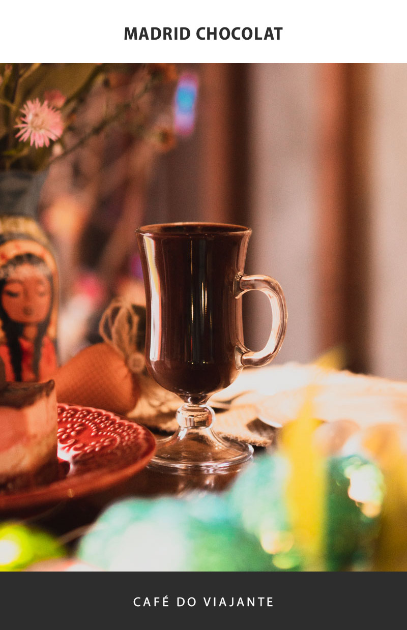 Inspirado no chocolate quente servido na Chocolateria San Ginés, uma das mais antigas de Madrid, na Espanha.