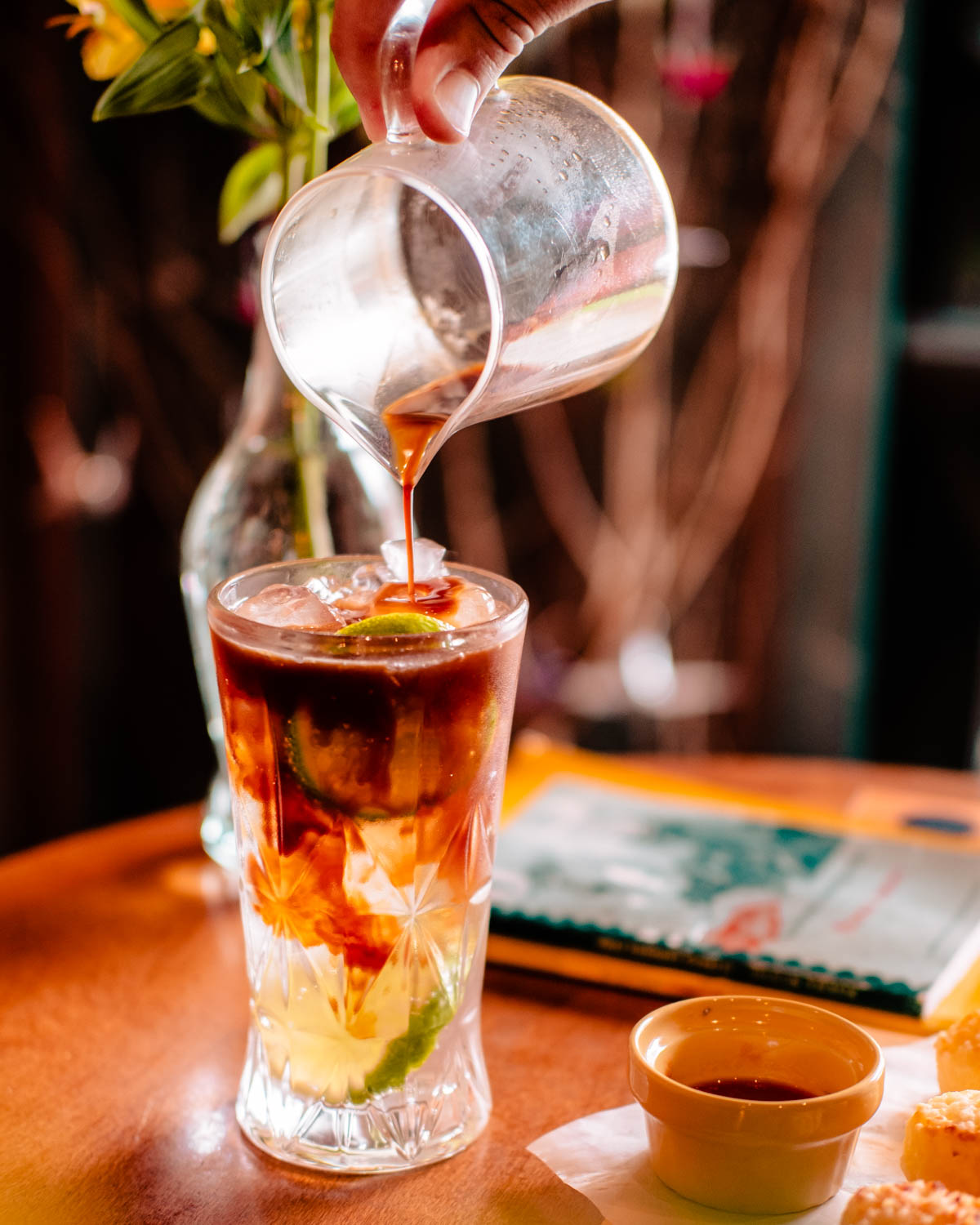 Deliciosa bebida refrescante preparada com espresso, limão, água tônica e gelo.