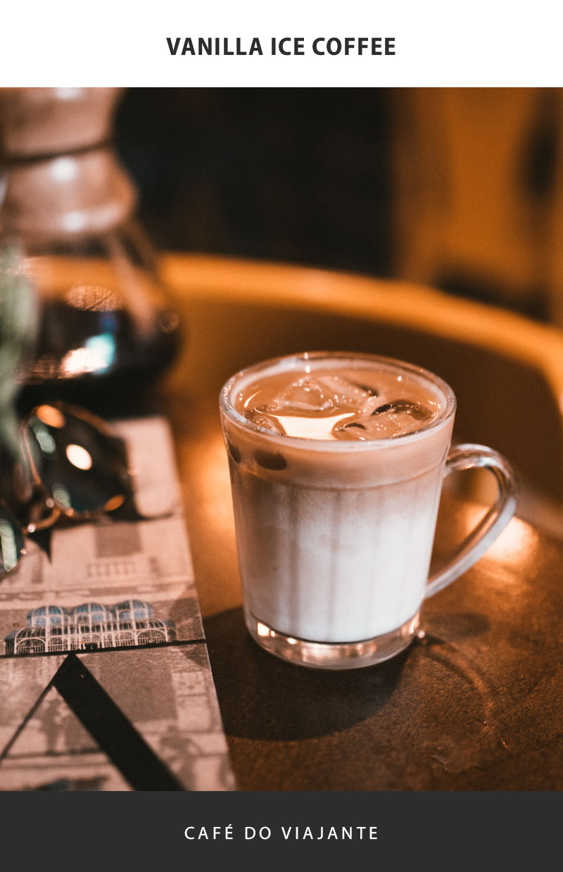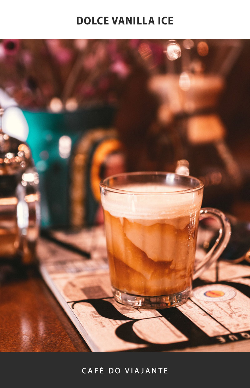 O famoso vanilla ice coffee preparado com puro doce de leite.