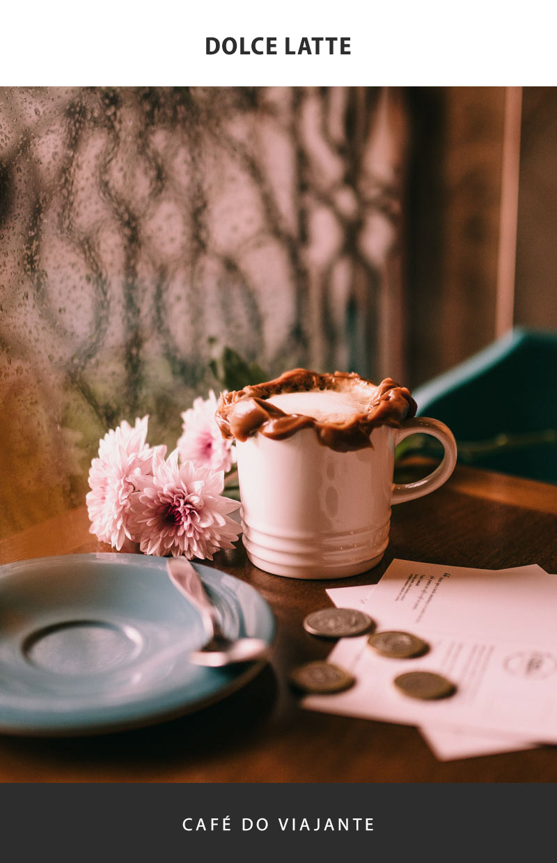 Espresso, leite vaporizado e doce de leite. Disponível em 100 ou 200ml.