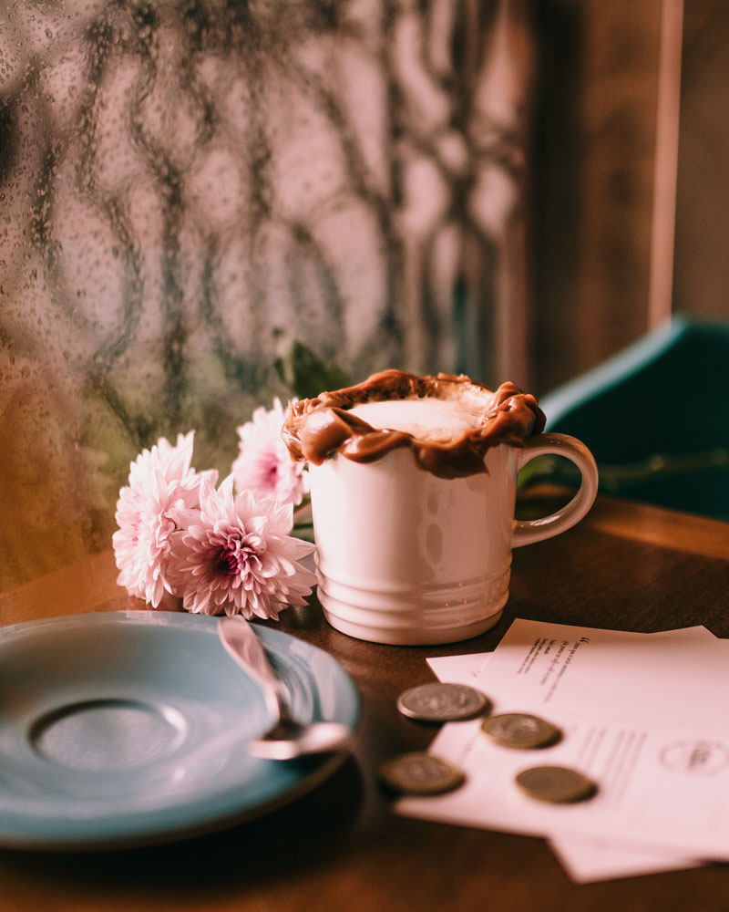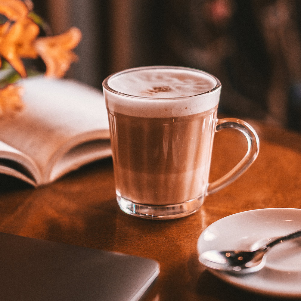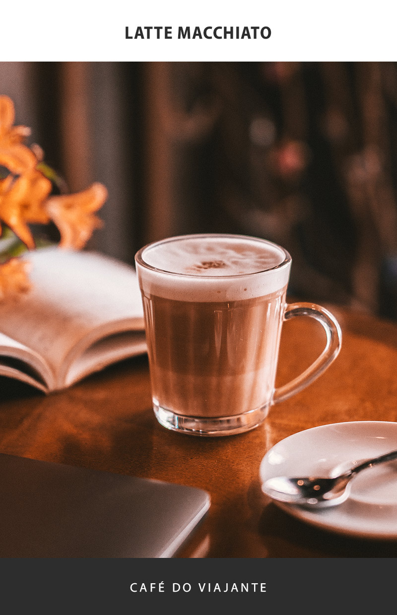 Bebida especial preparada com espresso, uma parte de leite e uma deliciosa calda de chocolate quente.