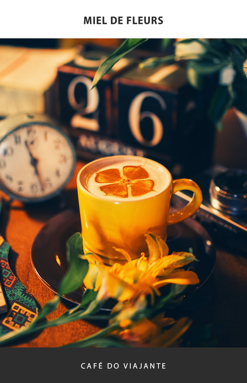 Espresso, leite vaporizado, baunilha e mel. Disponível em 100 ou 200ml.
